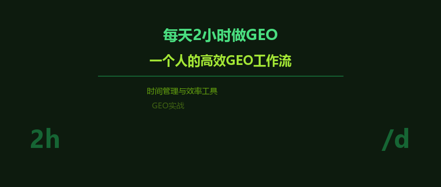 这篇文章给出一个经过验证的方案:每天2小时,一个人也能稳定做GEO。不是理论推演,是我自己和几个同行实测过的工作流。