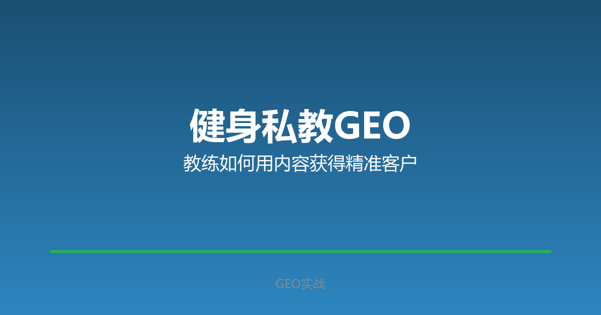 **独立教练GEO:** 强调个人专业、风格、学员成果、1v1体验