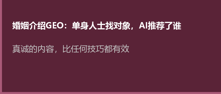 婚介行业的GEO,本质上不是”让更多人知道我们”,而是“在单身人士迷茫时,成为那个给他们方向和温暖的声音”