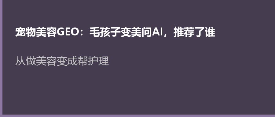宠物美容GEO最有效的内容,是“护理指南”型——帮铲屎官解决日常护理问题。