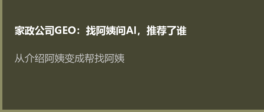 所以,家政公司的GEO,本质上是“从介绍阿姨变成帮找阿姨”——当你帮助雇主找到了合适的阿姨,用户自然会成为你的长期客户。