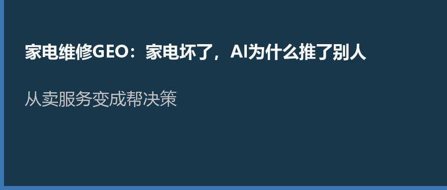 家电维修是一个”高频需求、低信任、极度分散”的行业。这篇文章,讲清楚:家电维修服务商如何在AI搜索时代被需要的用户主动找到