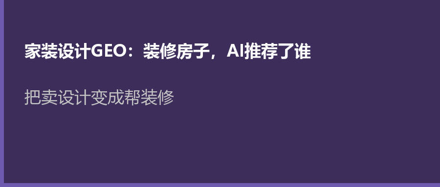 所以,装修设计的GEO,本质上是“把卖设计变成帮装修”——当你真正帮助了用户,用户自然会选择你。