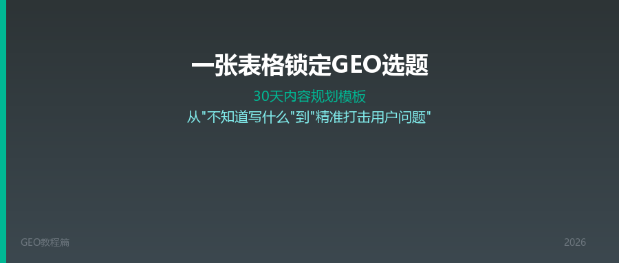 很多人都知道GEO要做内容,但打开编辑器那一刻,脑子一片空白:今天写什么?明天写什么?下周写什么?写了一堆,好像没什么效果。