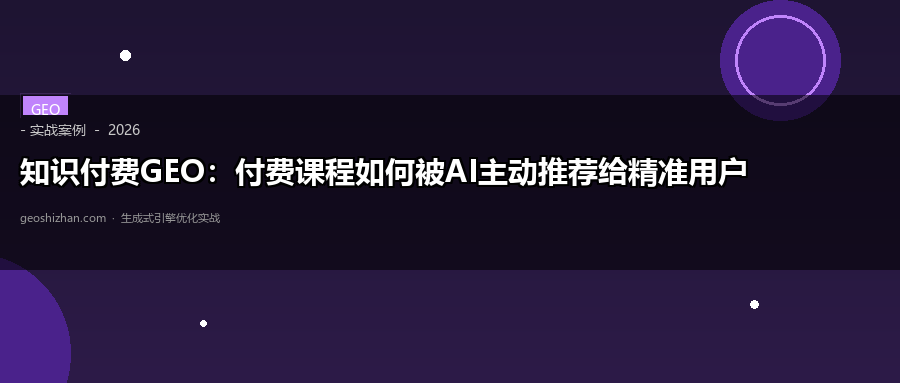 知识付费GEO的核心是:用专业内容和真实口碑,在用户搜索课程时建立信任。AI推荐你一次,可能就是一个付费学员。