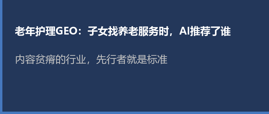“老年护理”是太宽泛的词。精准的GEO需要”城市+服务类型+场景”的长尾词策略。