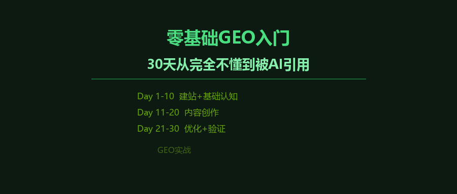 这篇文章就是答案。一个30天的GEO入门路线图,从零开始,到被AI引用,每一步都写清楚。