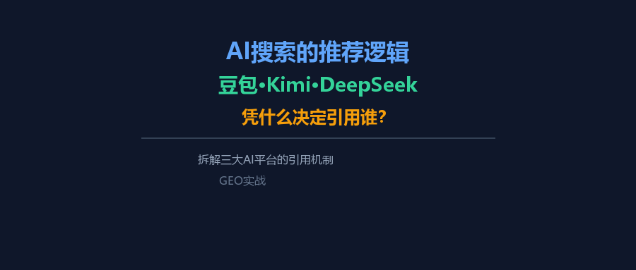 我把三大AI搜索平台(豆包、Kimi、DeepSeek)的引用逻辑拆开来讲。不是说它们公开了算法——没有哪家会公开——而是通过大量测试和对比,总结出的可验证规律。