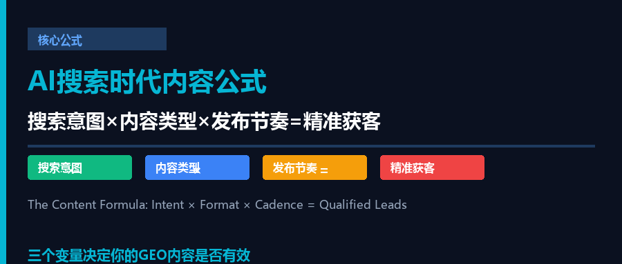 *本文提到的内容公式适用于大多数行业的GEO内容规划,具体执行需结合各自行业的特点和决策周期。