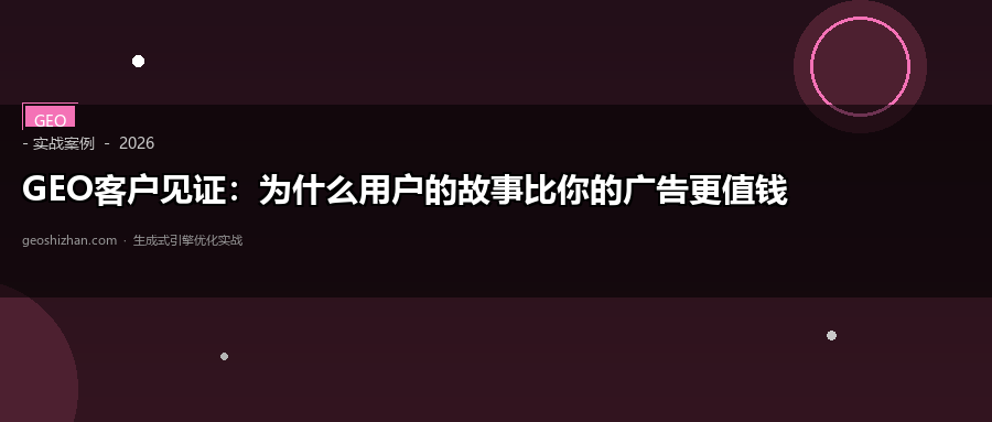 客户见证是GEO里最被低估的武器。一条真实的客户故事,比你花10万投的广告更有效。开始收集客户见证,让真实用户帮你说话。