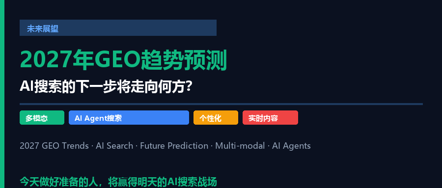 但有一点是确定的:AI搜索不会消失,只会越来越重要。现在就开始做GEO的人,将在2027年收获最大的回报。