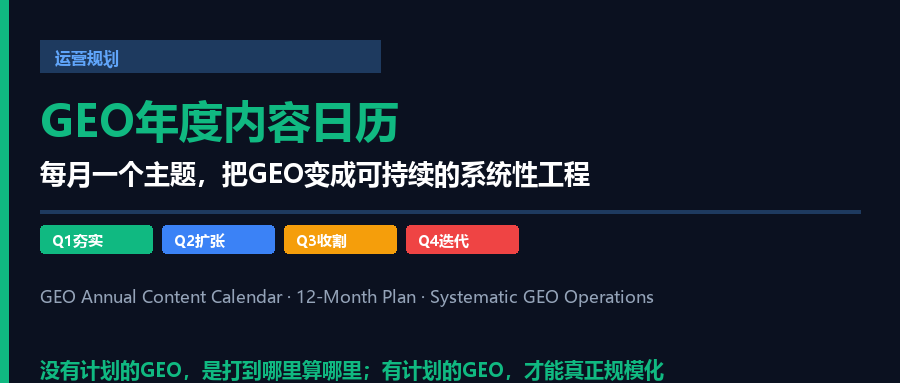 这篇文章,是GEO年度内容日历的完整规划——告诉你如何把GEO变成每月一个主题的系统性工程。