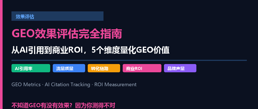 这篇文章,给你一套完整的GEO效果评估框架——从AI引用监测到商业ROI量化,五个维度,系统评估你的GEO投资回报。