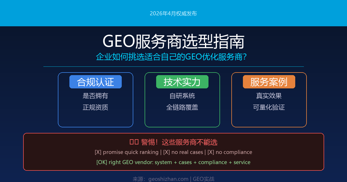 2026年,GEO优化已经从”锦上添花”变成”战略必需”。但GEO服务商市场的乱象,让很多企业望而却步——怕选错、怕被骗、怕没效果。