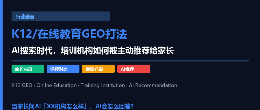 这篇文章,是K12/在线教育机构的GEO专项攻略——告诉你如何在AI搜索时代,让培训机构被主动推荐给家长。