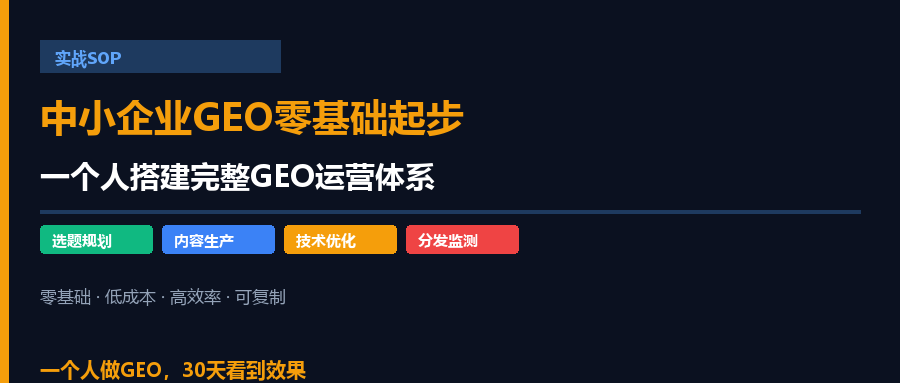这篇文章,是给所有想开始做GEO、但不知道从哪里开始的中小站长、内容创作者和个体创业者的一份零基础起步完整SOP。
